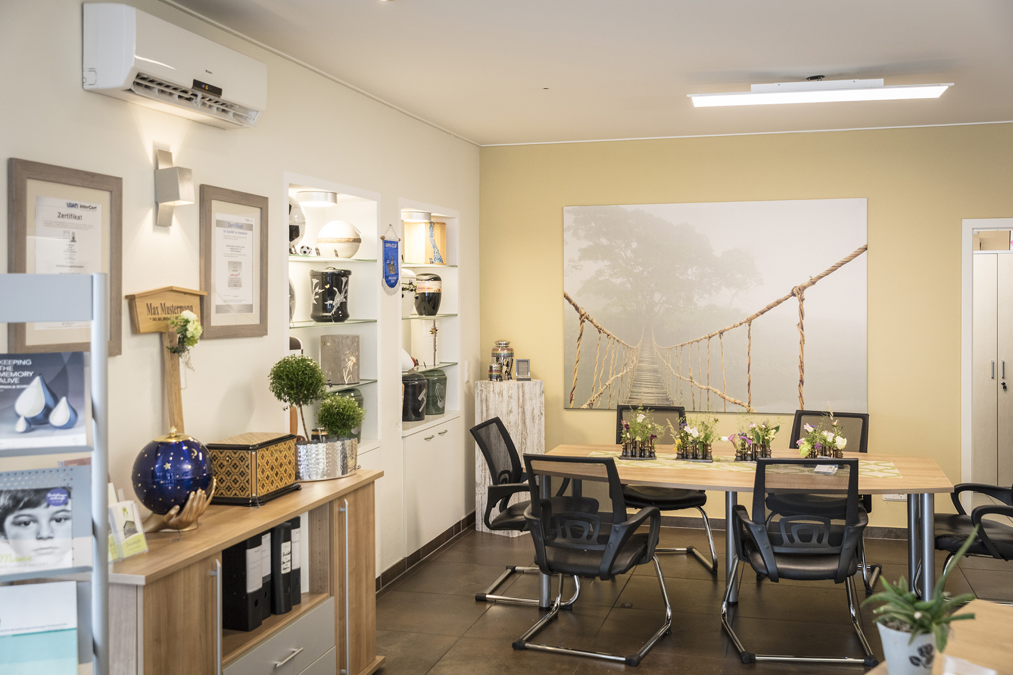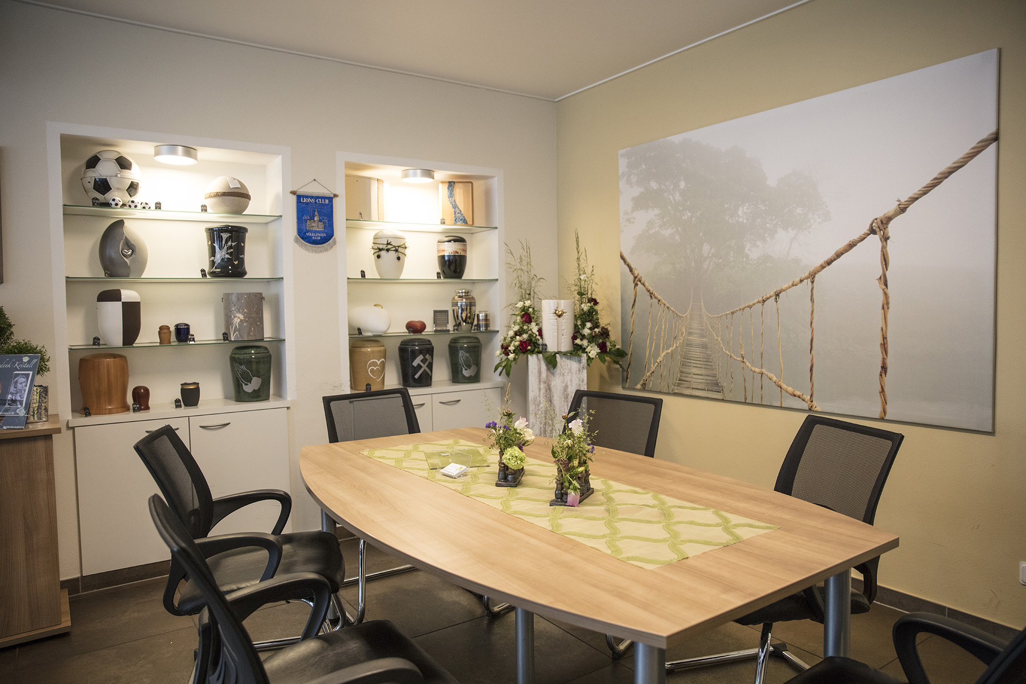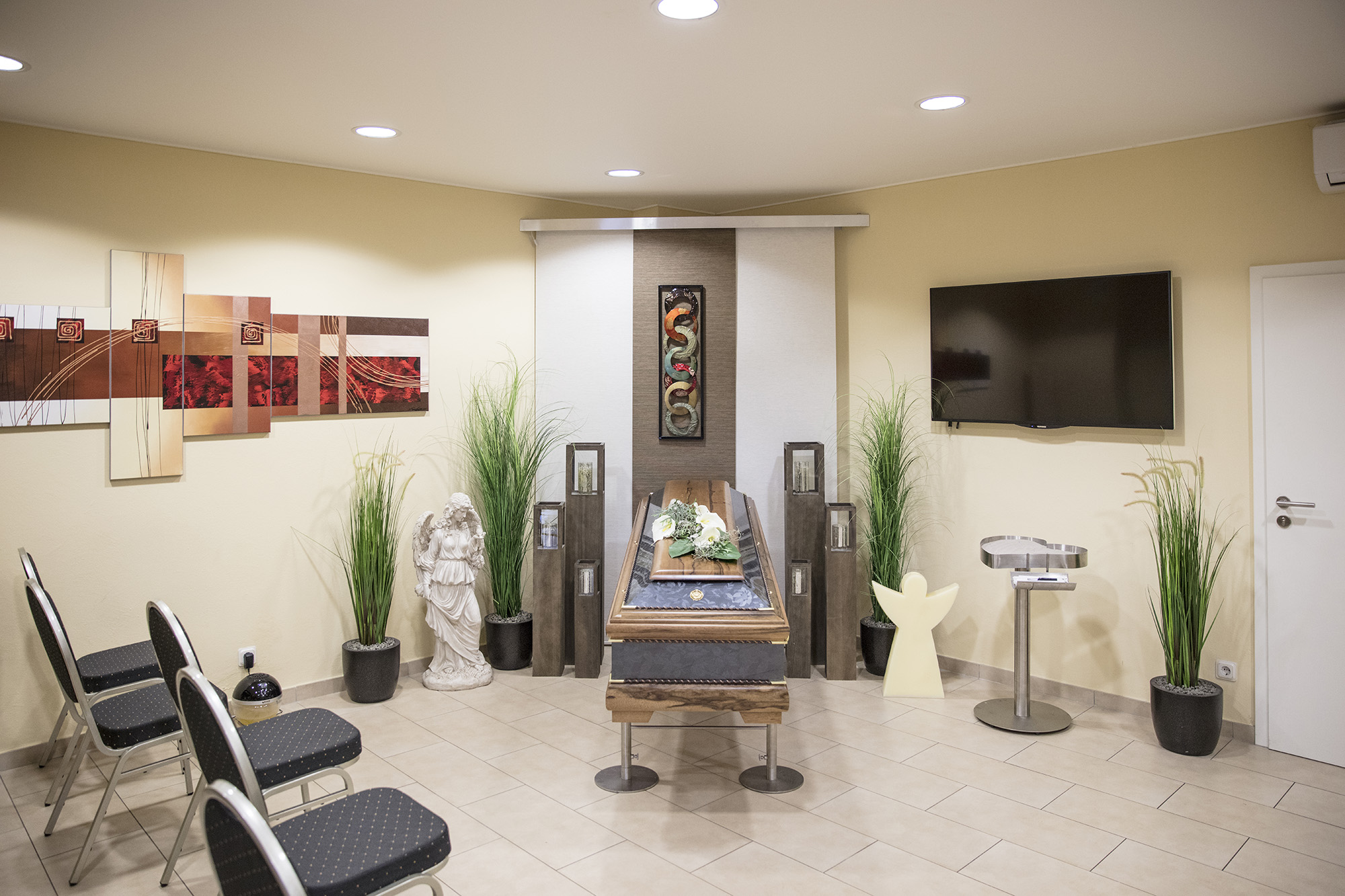 In unserem Haupthaus in Völklingen nehmen wir die Verstorbenen bis zur Beisetzung oder Kremierung in Obhut. Hier werden sie hygienisch versorgt, eingekleidet und in den Sarg gebettet. Und hier haben wir auch einen Abschiedsraum eingerichtet. Alleine oder im Kreis der Familie können Sie so am offenen Sarg letzte gemeinsame Momente mit dem Verstorbenen verbringen, sich noch einmal sammeln, den Verlust begreifen und für sich annehmen. Besuchstermine können Sie flexibel mit uns abstimmen. Ihr persönlicher Ansprechpartner wird dann für Sie vor Ort sein, um Sie zu begleiten.